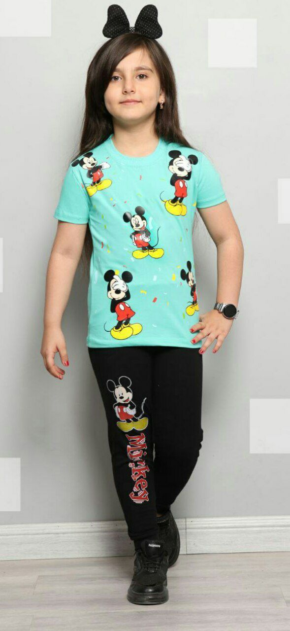 - تیشرت سبز پستهای با شلوارک آبی 2