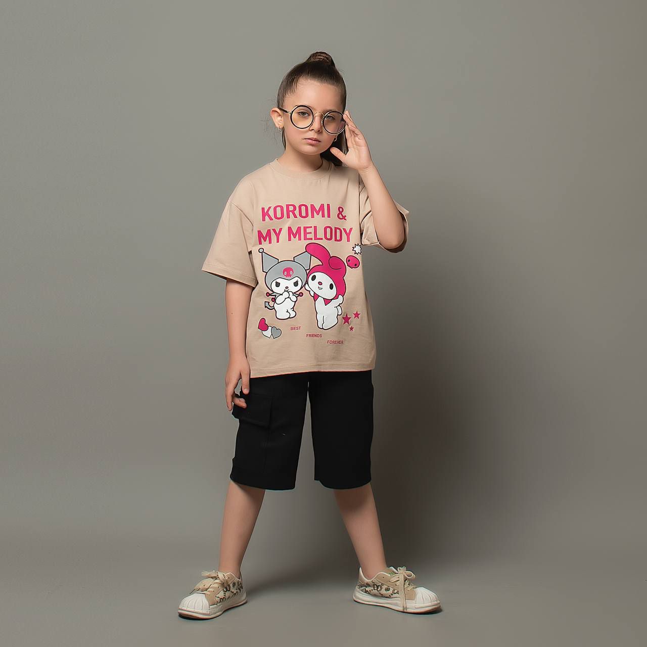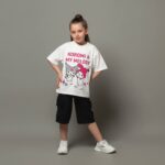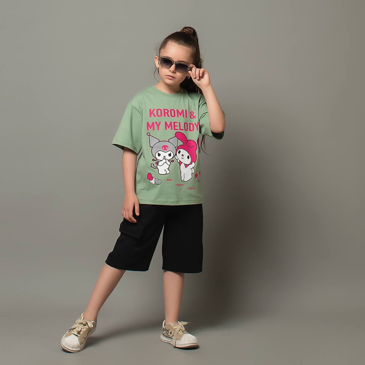 تیشرت و شلوارک دخترانه کتان لش باکسی کرومی و ملودی