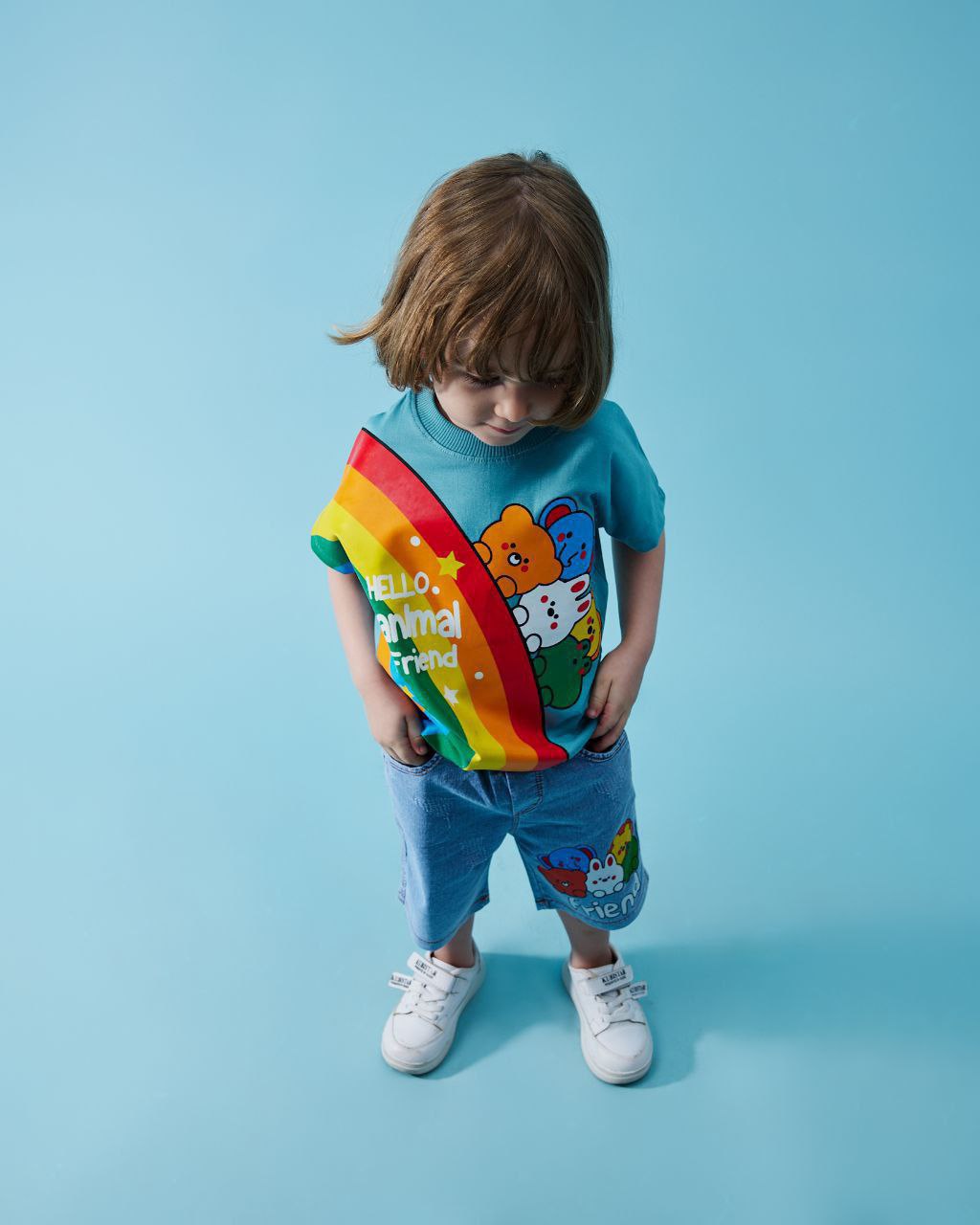 تیشرت تک حیوانات رنگین کمان دخترانه و پسرانه