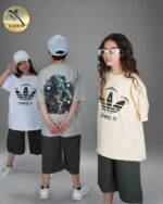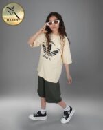 تیشرت و شلوارک کتان آدیداس پشت و رو چاپ دخترانه و پسرانه