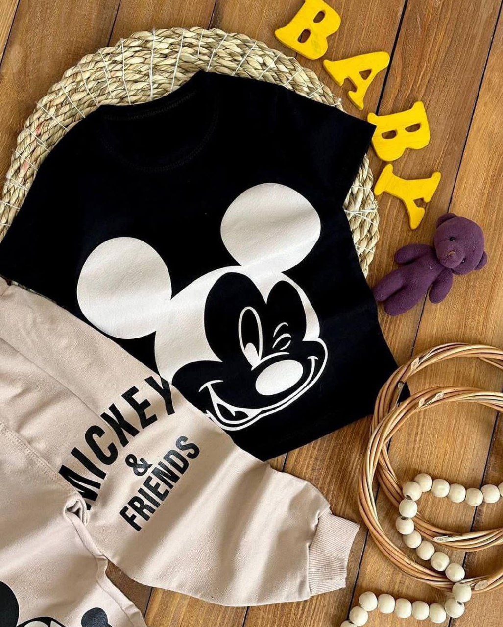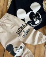 تیشرت مشکی و شلوار کرم میکی موس دخترانه و پسرانه