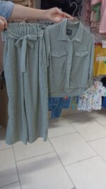 سایز ۵۵ 👈 قد کراپ ۴۶/ پهنا ۴۴/ شلوار ۸۲ کمر بدون کشسانی۲۴/ کمر با کشسانی ۳۸/ قد فاق ۳۱/پهنای فاق۴۲/ دور ران۲۳/دم پا۲۰