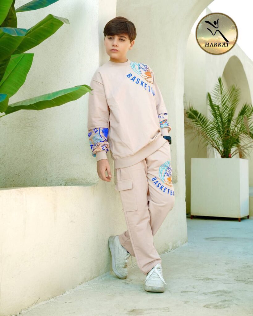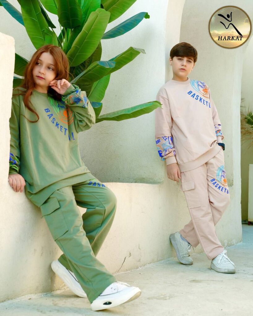 ست بلوز و شلوار دخترانه و پسرانه چاپ توپ بسکتبال