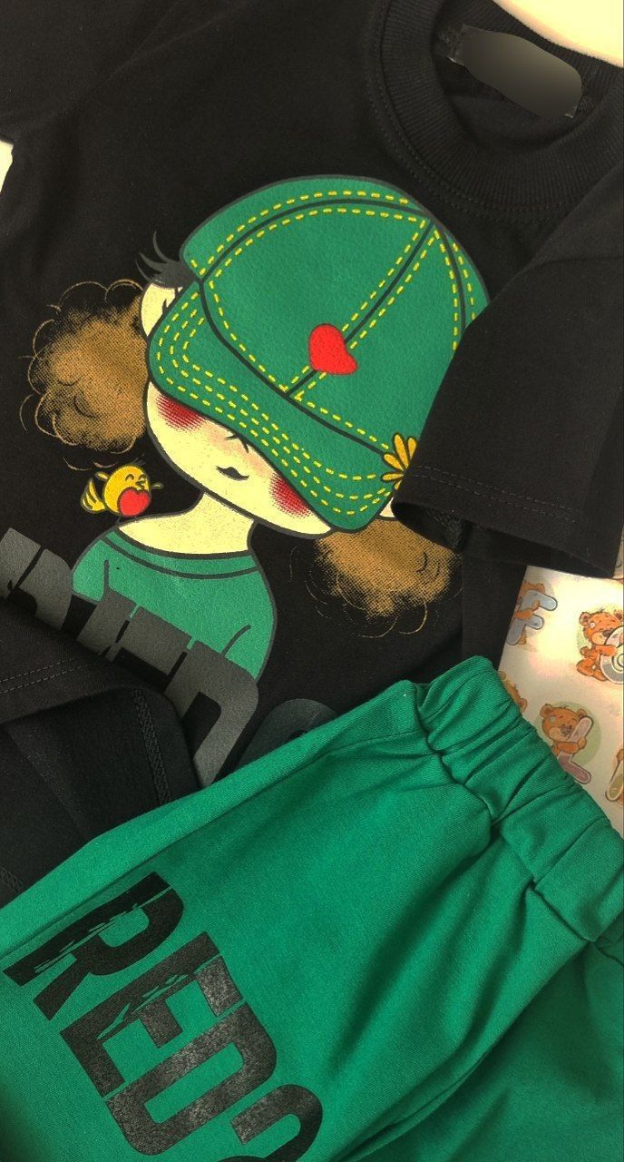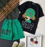 تیشرت و شلوارک دختر کلاهدار RED