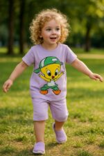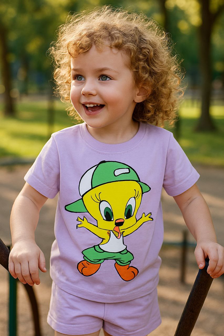 ست تیشرت و شلوارک پنبه لاکرا خنک و راحت، با طرح جوجهتوییتی شیطون، اومده که تابستون کوچولوهاتون رو رنگی و شاد کنه! عالی برای بازی و شیطنتهای تابستونی 🐥🤸♀️