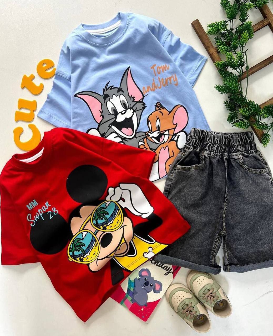 بچهها آمادهاید برای کلی شادی و هیجان با میکی و دوستاش؟ 🤩 این ستهای جذاب تیشرت و شلوارک با چاپهای دوستداشتنی میکی موس و رفقاش (دونالد، پلوتو) اومده که حسابی تابستون رو به کام کوچولوهاتون شیرین کنه! با رنگهای تازه و دلنشین سبز کمرنگ و سبز پررنگ، و با رنگهای شاد زرد، سرخابی، آجری، کرم و شتری که همهجا میدرخشن! ✨ این ستهای پنبه ای پشت و رو چاپ هستند و هم خیلی راحت و خنک، عالی برای بازی و شیطنتهای روزمره دلبند شما از ۲ تا ۹ سال. چی بهتر از یه لباس راحت و پر از شخصیتهای محبوب برای فرشتههای کوچیکتون؟