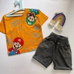 😎 استایل گنگ و راحتی بینظیر با ست تیشرت و شلوارک کرومی! 😈🤘 این ست با پارچه نرم و لطیف، بهترین انتخاب برای بازی و فعالیتهای روزمره کوچولوهای خاص شماست. کرومی منتظرشونه! 🎀☠️
