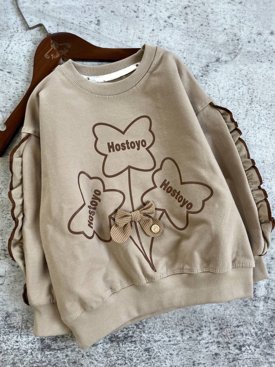 👧🏼 بلوز دورس دخترانه مدل آستین نواری چاپ پروانه