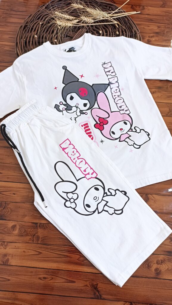 ✨ کیوتترین رفاقت دنیا رو ببینید! 🐾💖 ست تیشرت و شلوارک کرومی شیطون و مایملودی مهربون، اومده که دل همه رو ببره! این ست فقط خوشگل نیست، فوقالعاده راحته و قراره بشه لباس محبوب کوچولوهاتون.