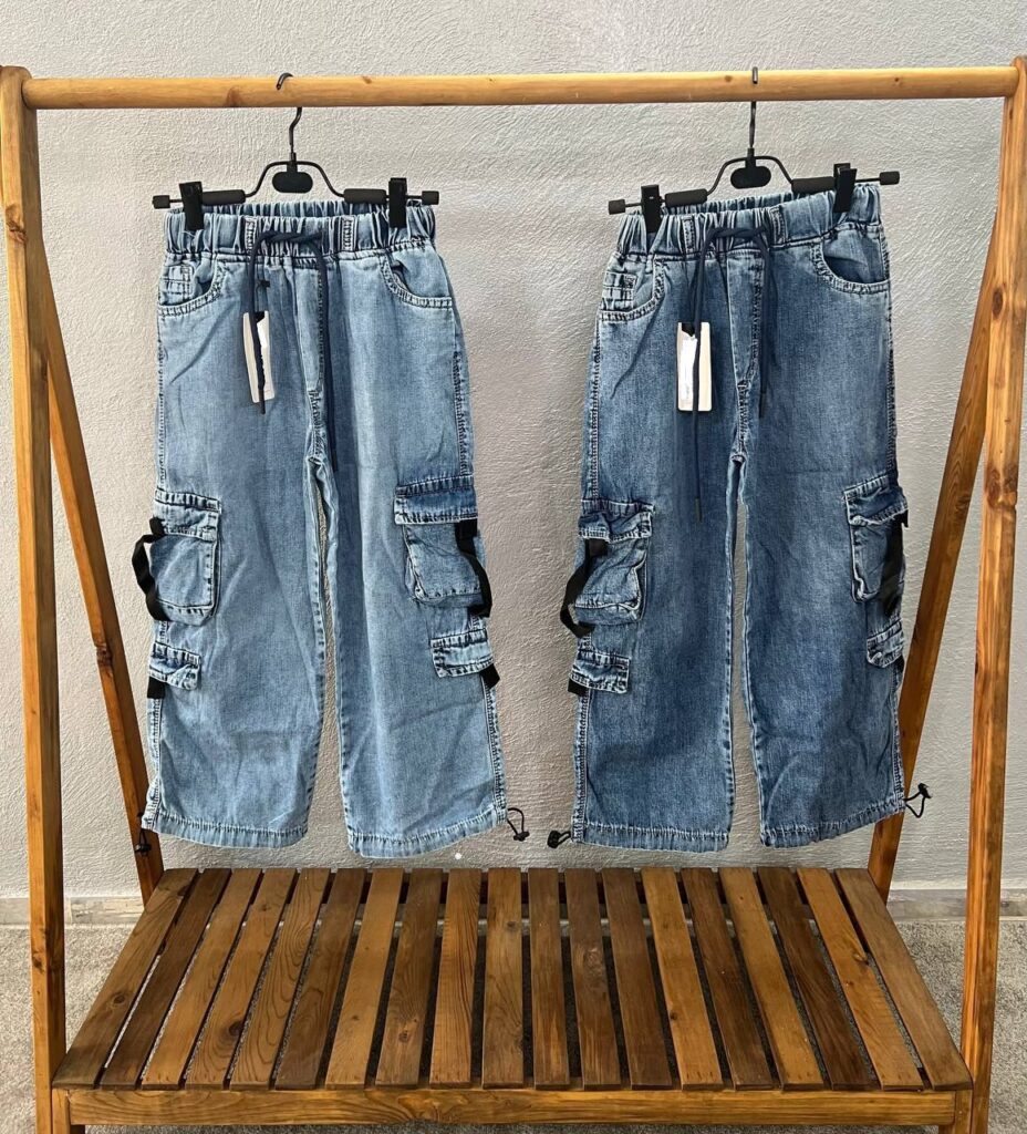 شلوار جین آبی کارگو دخترانه و پسرانه