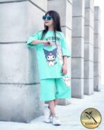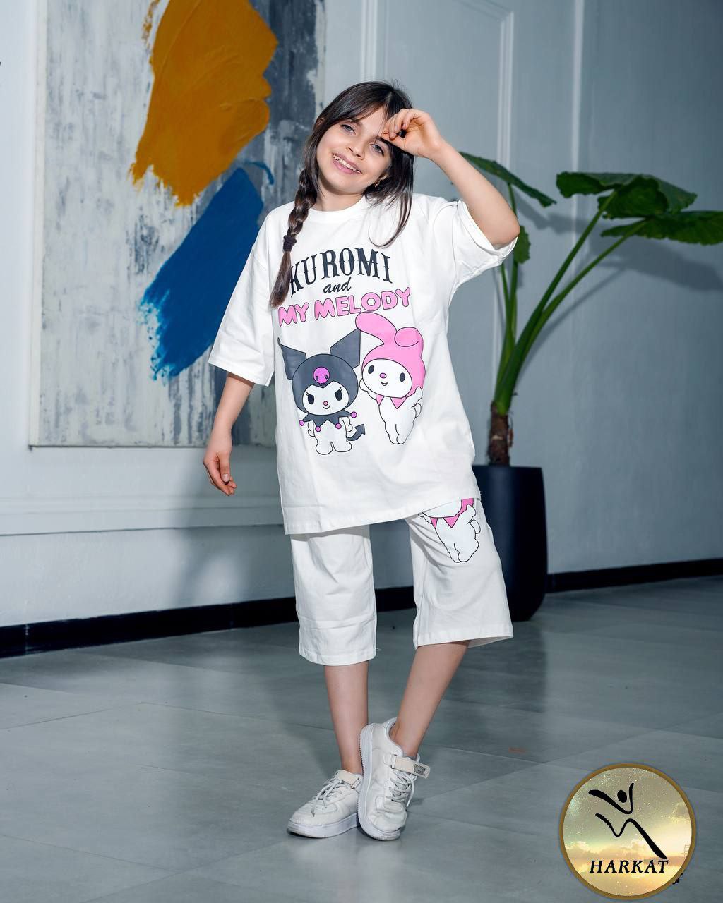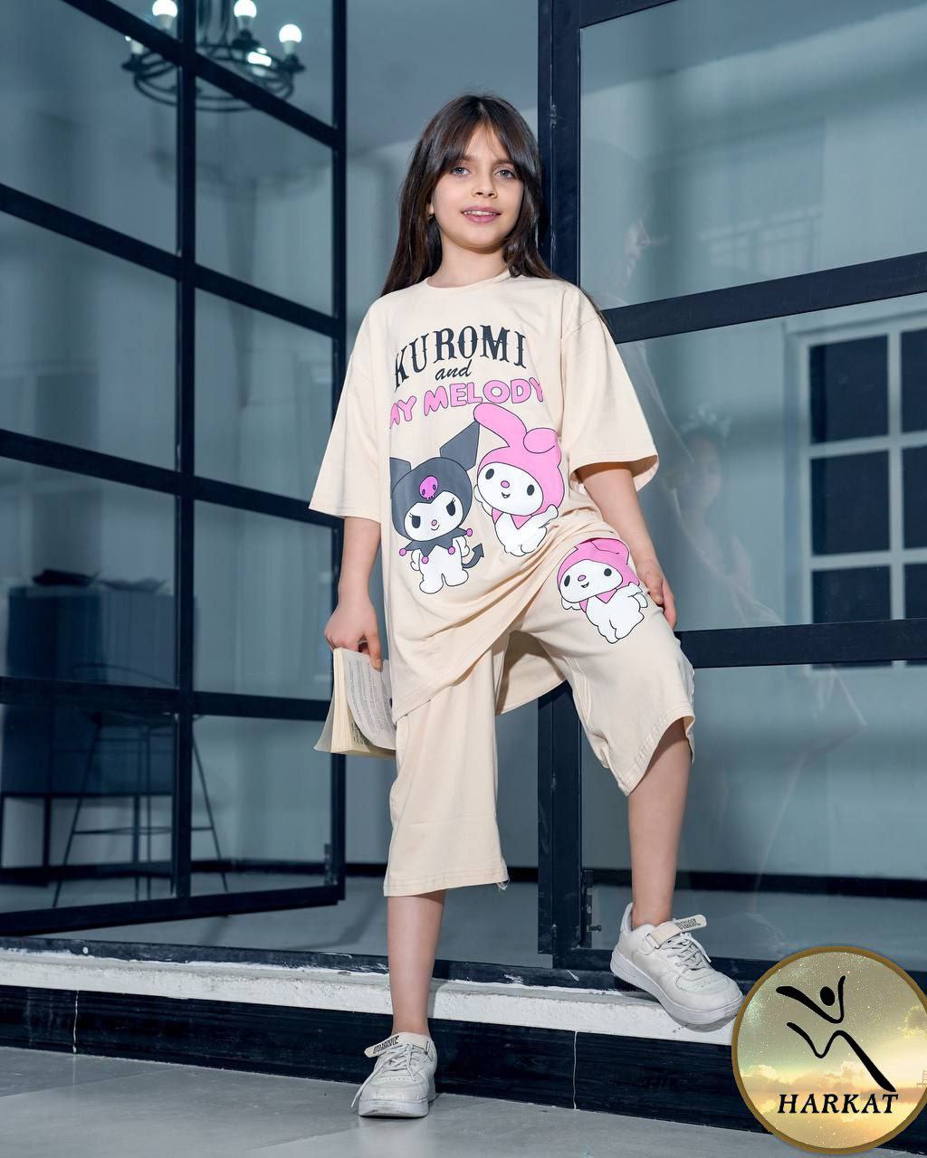 تیشرت و شلوارک دخترانه کتان لش باکسی کرومی و ملودی