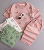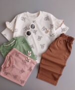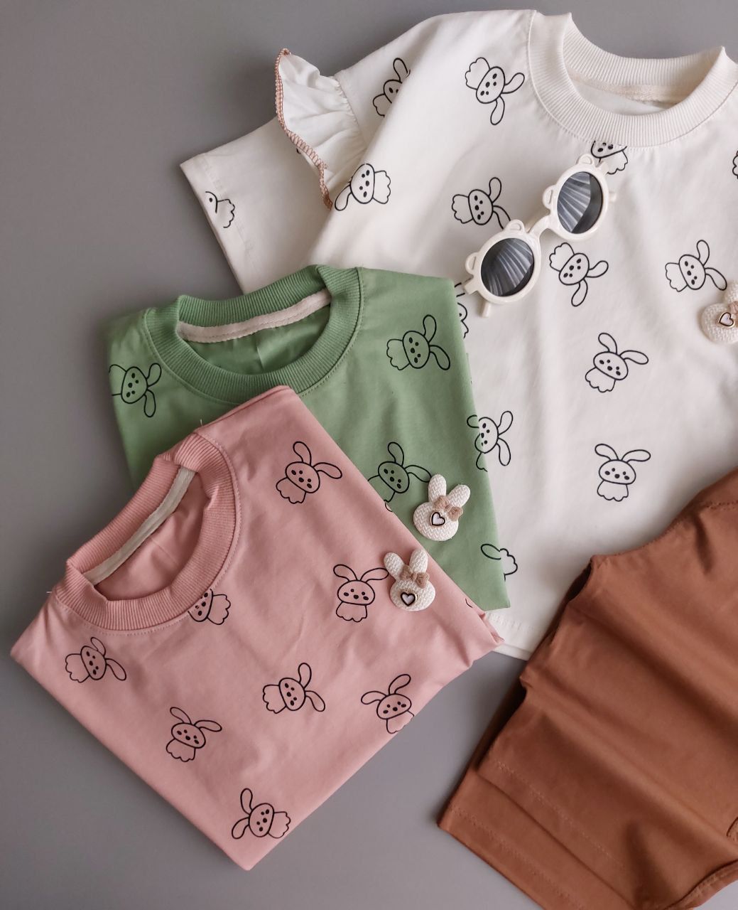 ✨ ست تیشرت و شلوارک خرگوشی جدیدمون با طرحهای خاص و رنگهای دلبر، دقیقاً همون چیزیه که پرنسس کوچولوی شما برای درخشیدن تو جمع نیاز داره. 👑💖