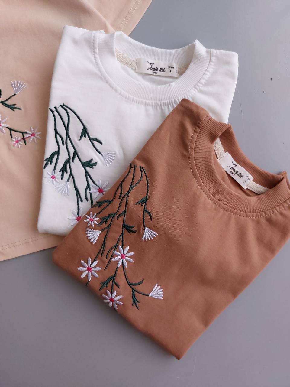 🙋♀️دختر کوچولوی شما با این تیشرتهای دلبر با گلدوزی زیبای طرح گل و آستینهای چیندار، کیفیت عالی و دوخت تمیز، مثل یه پرنسس میدرخشه. ✨