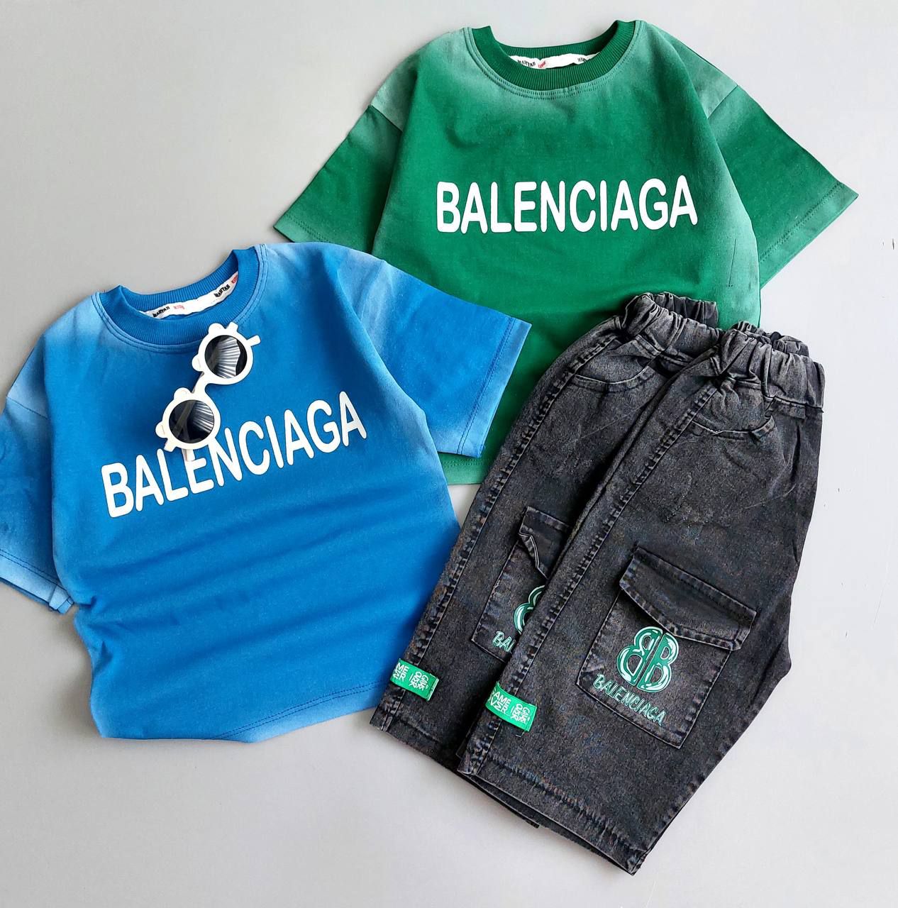 ست اسپرت دخترانه و پسرانه تیشرت و شلوارک لی بالنسیاگا