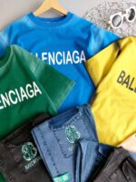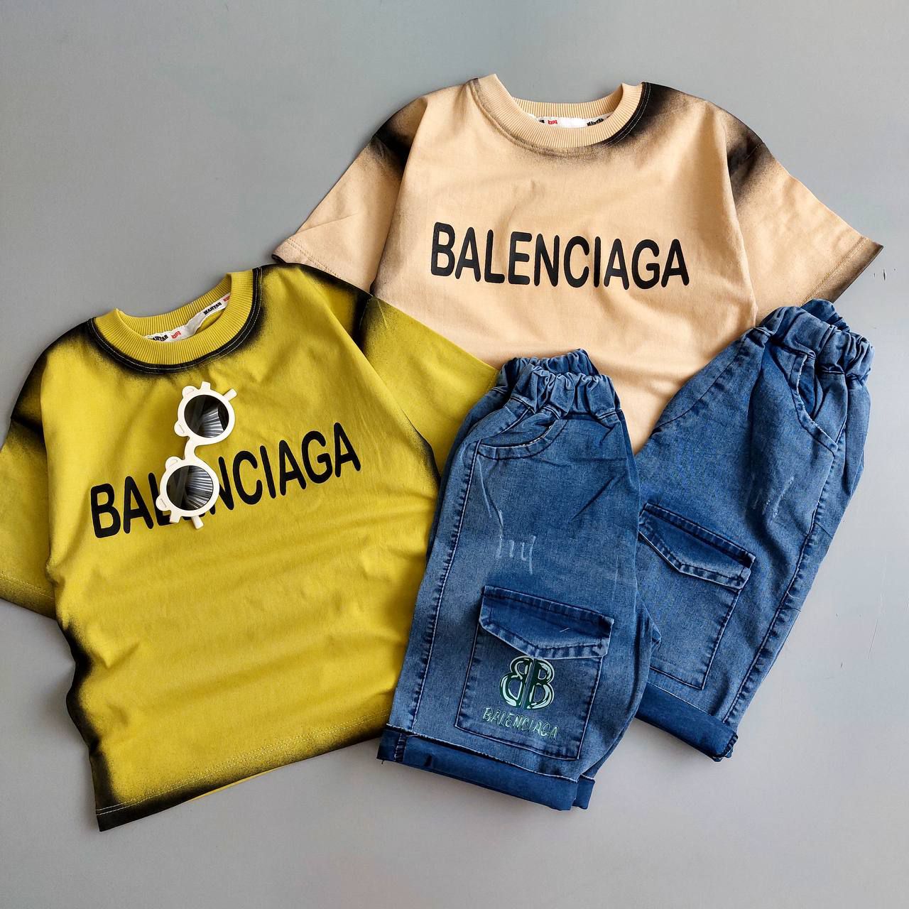 ست اسپرت شیک و با کیفیت تیشرت و شلوارک لی طرح Balenciaga.