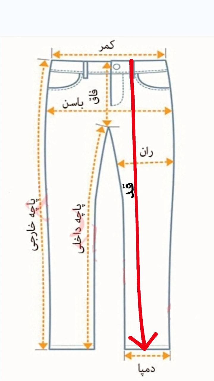 قد شلوارک ۵۳، فاق ۲۹، پهنای باسن ۴۸