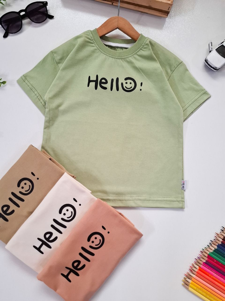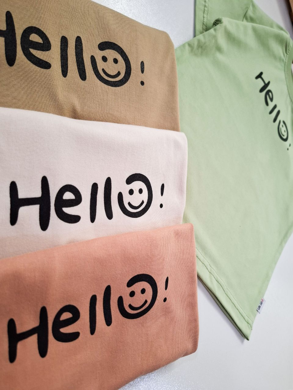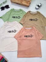 “سلامی به رنگارنگی تابستون! ☀️ تیشرتهای پنبه بامزه با طرح “Hello” در رنگهای شاد و دوستداشتنی، بهترین انتخاب برای کوچولوهای پرانرژی شما. یه استایل راحت و شیک برای روزهای گرم! 😎”