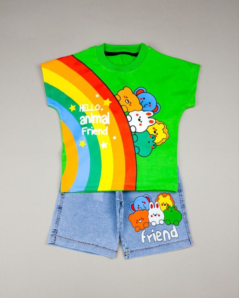تیشرت تک حیوانات رنگین کمان دخترانه و پسرانه